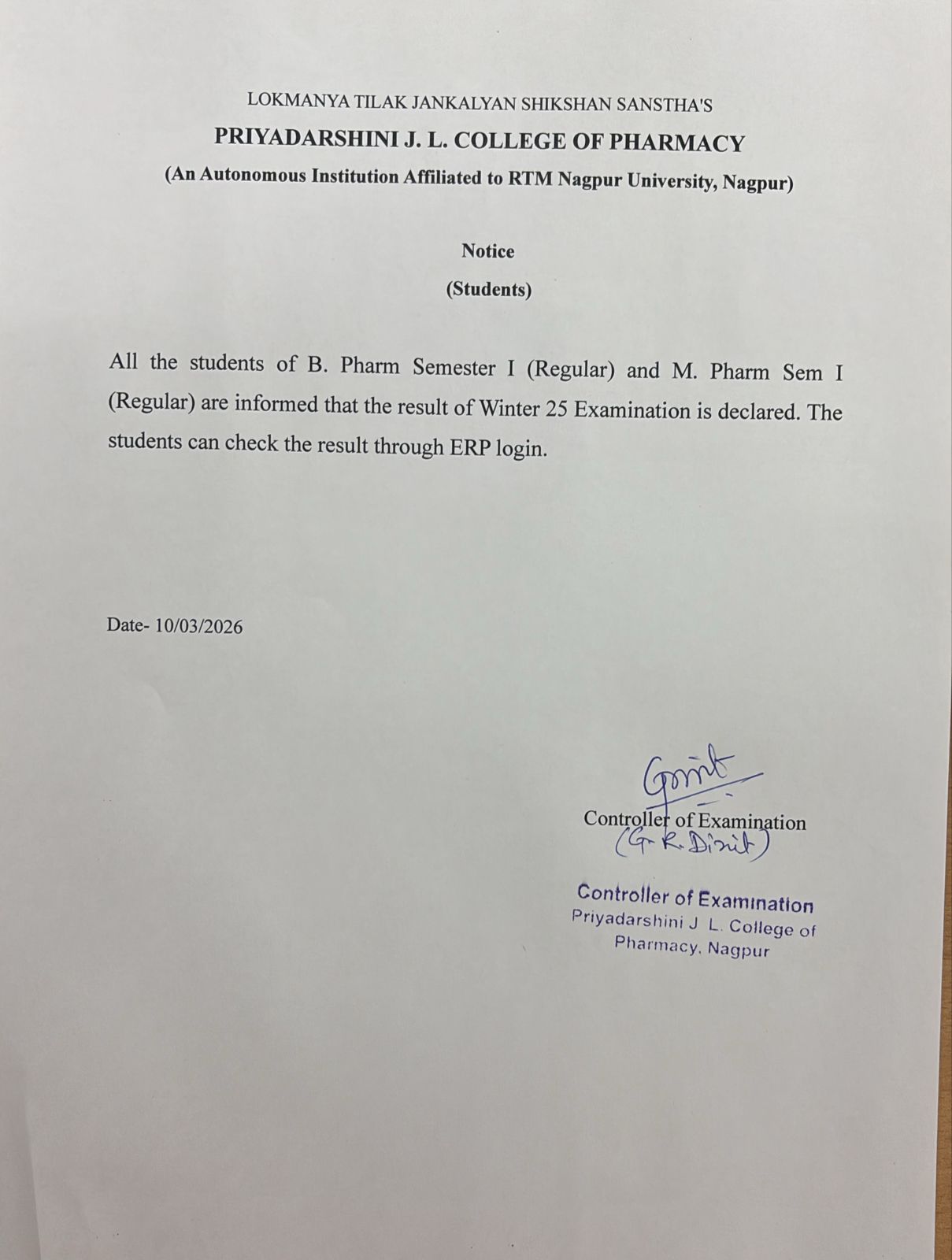 Priyadarshini J. L. College of Pharmacy (Degree),