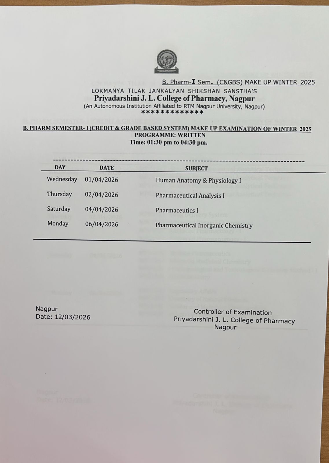 > Winter 2025 Make Up B.Pharm Sem III Result Declaration Notice