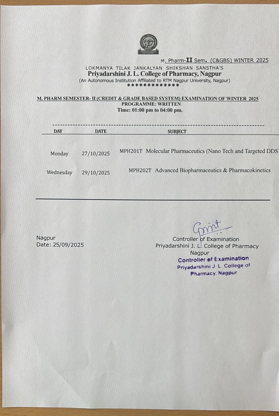 Priyadarshini J. L. College of Pharmacy (Degree),