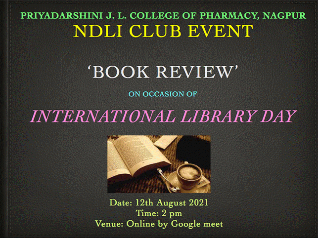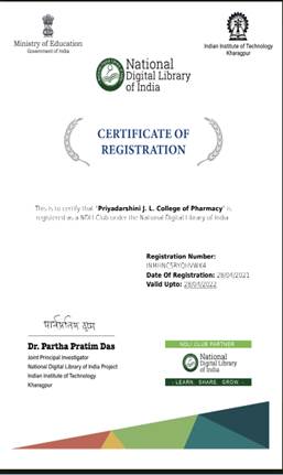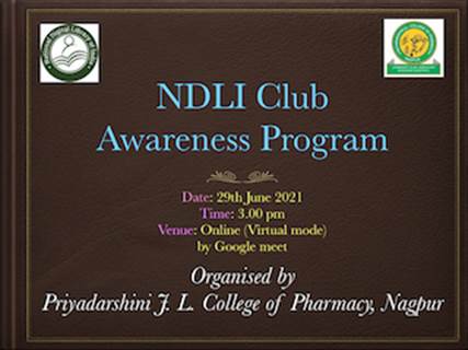 The NDL Club of Priyadarshini J.L College of Pharmacy, Nagpur provides a forum for students to promote culture of reading and learning using NDLI’s vast resources and to enhance their core competence, sharpen their skill & personality traits.