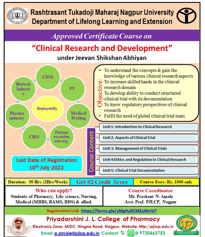 All courses approved by Department of Lifelong Learning & Extension, Rashtrasanta Tukadoji Maharaj Nagpur University, Nagpur